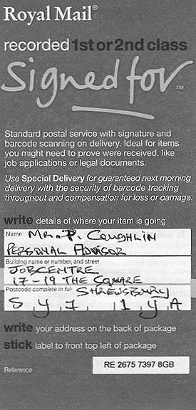 I will take a copy of this letter with me to the Jobcentre on February 13th 2003, and I will also e-mail a copy of the text to the government minister responsible for the UK Department of Social Security (Mr Andrew Smith).