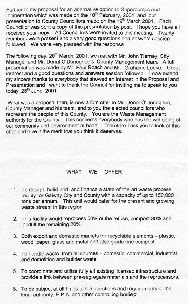 Waste Management recycling proposal for County Galway which would avoid the need for both  superdumps  and  incinerators  ...